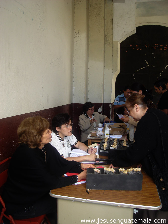 Los fieles y visitantes recibian una cordial bienvenida por las integrantes de la Cofradia, prueba de ello vemos en esta foto a Traute Hentze de Zea.