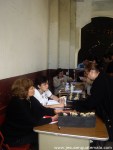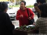 La señora Delia de Hentze, brindandole los precios de los ricos platillos que estaban en venta en la placita