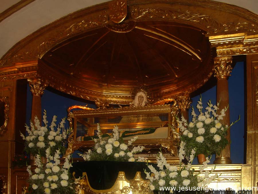 El Templo de Santo Domingo lo estan pintando, por tal motivo Nuestra Madre la Virgen Dolorosa, se encuentra en la misma Capilla de Jesus Sepultado.