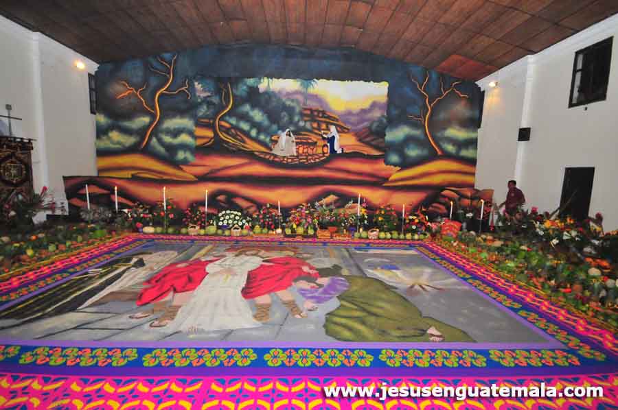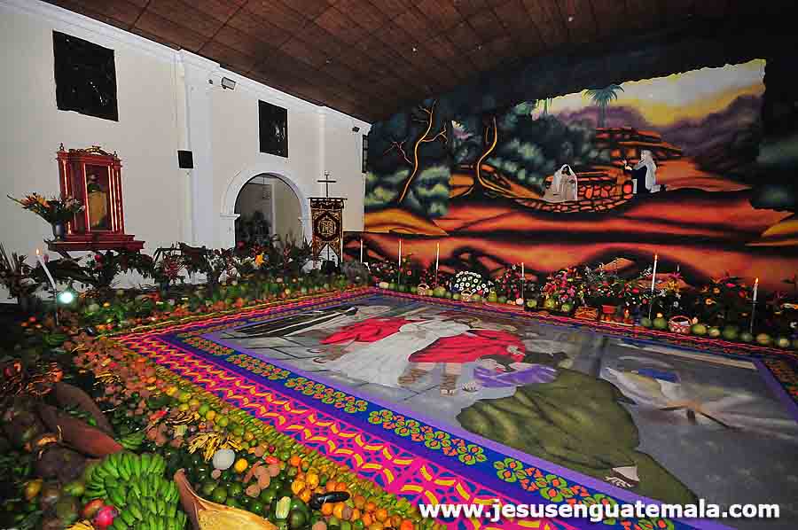 La alfombra llevo casi 18 horas su elaboracion, el significado es la negacion de pedro, la fruta es traida de la costa sur y al finalizar la velacion se le dona a algun horfanato, hogar de ancianos, con relacion a la velacion el artista es jaime rodriguez, quien la elabora desde hace mas de 15 años a Jesus de la Caida sin costo alguno.