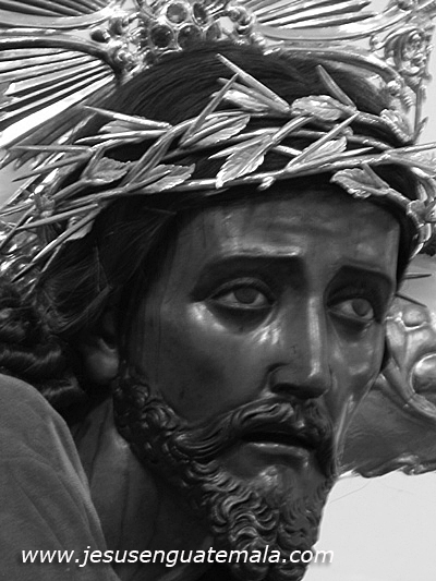 <>* DE JESÚS DE LOS MILAGROS— Cíngulo josefino / que se ata / a tu fatigada cintura / De madera es la cruz / dura // Das el paso / y la rodilla / choca con el camino / al Calvario / vas dejando / cruenta huella // Tu faz / diestra / mirada sin horizonte / Sí / la vuestra // Ensortijado y / negro pelo / que no se / echa al vuelo / por culpa / de una corona / Rey** — Guatemala, jueves (del Silencio), 18 de febrero de 1999.