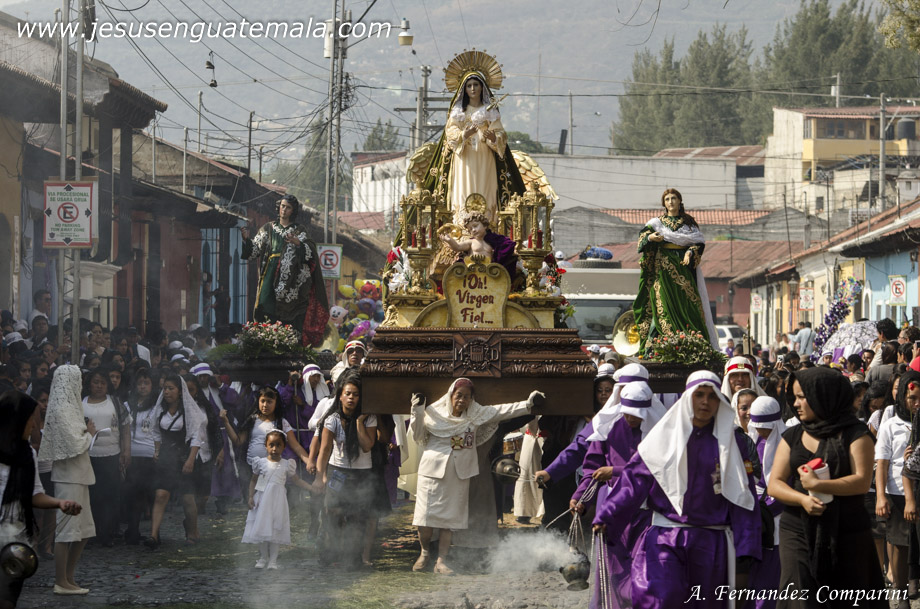 Queridisimas y bellisimas Imagenes del Señor Nazareno y Virgen de Dolores del templo Mercedario de Antigua Guatemala, hermosas fotos con el Volcan de Agua en el fondo y con sus miles de devotos cargadores, gracias y saludos desde TX USA