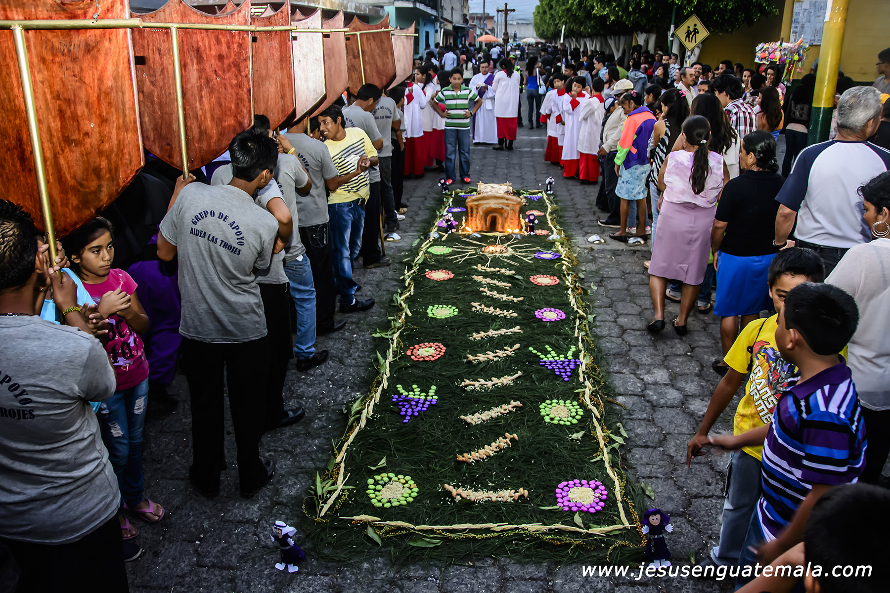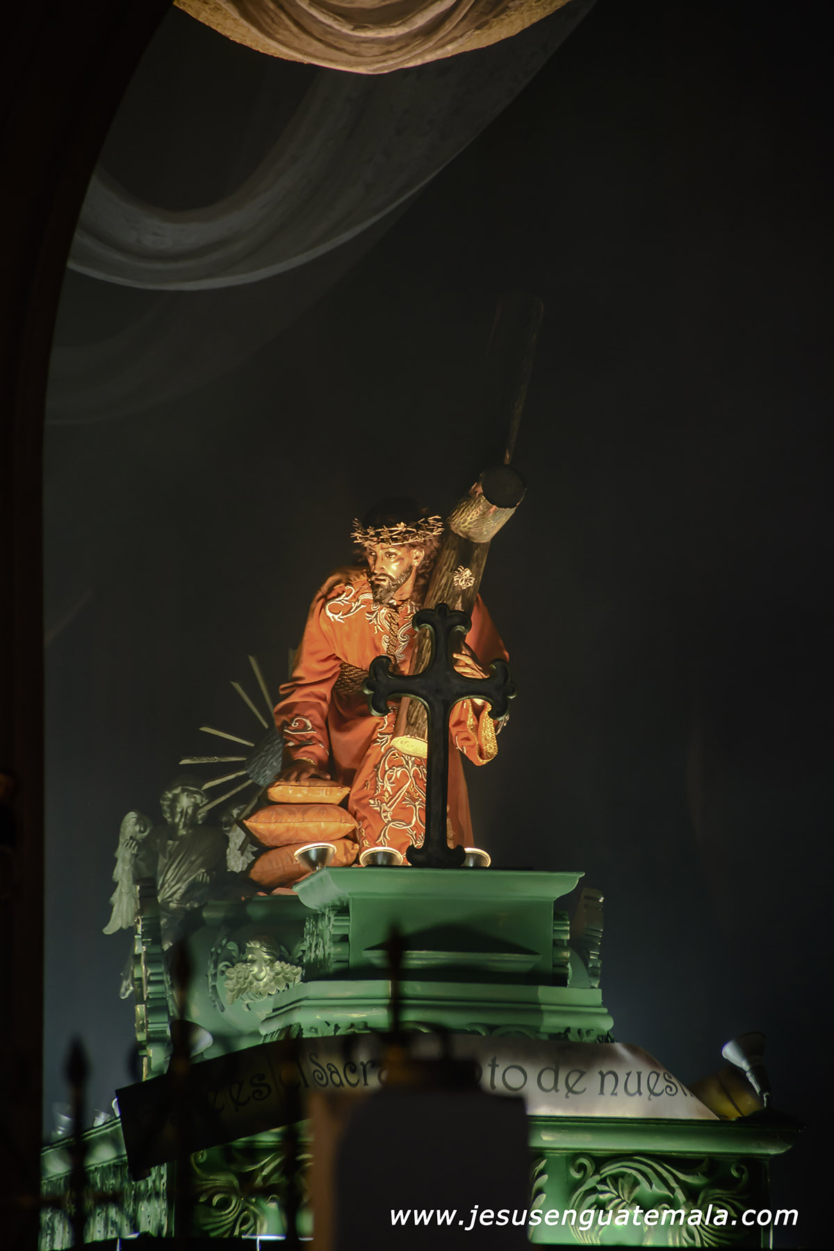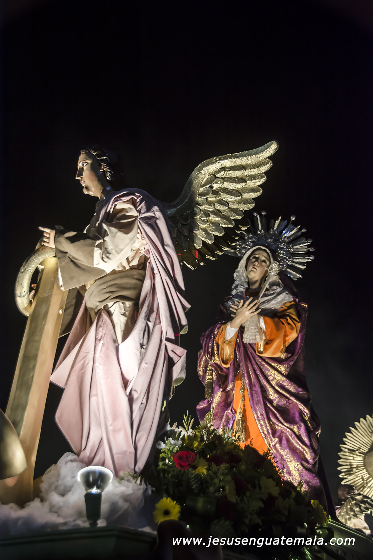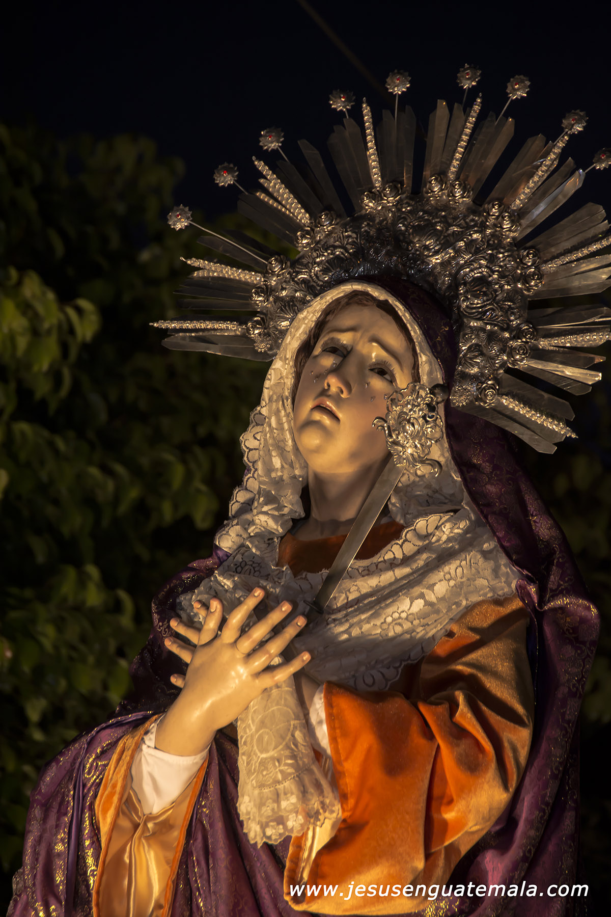 Muy Noble y Venerada Imagen de Jesús de la Caída y Santísima Virgen de Dolores, Reina de la Semana Santa Guatemalteca. Miércoles Santo Parroquia San Juan Bautista de Amatitlán. Conjunto escultórico que junto a San Juan y Santa María Magdalena, fueron restaurados y re estrenados este miércoles santo de 2,014.